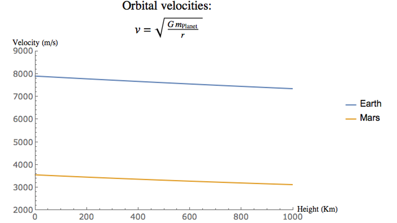 Orbital velocity 100 km above surface: